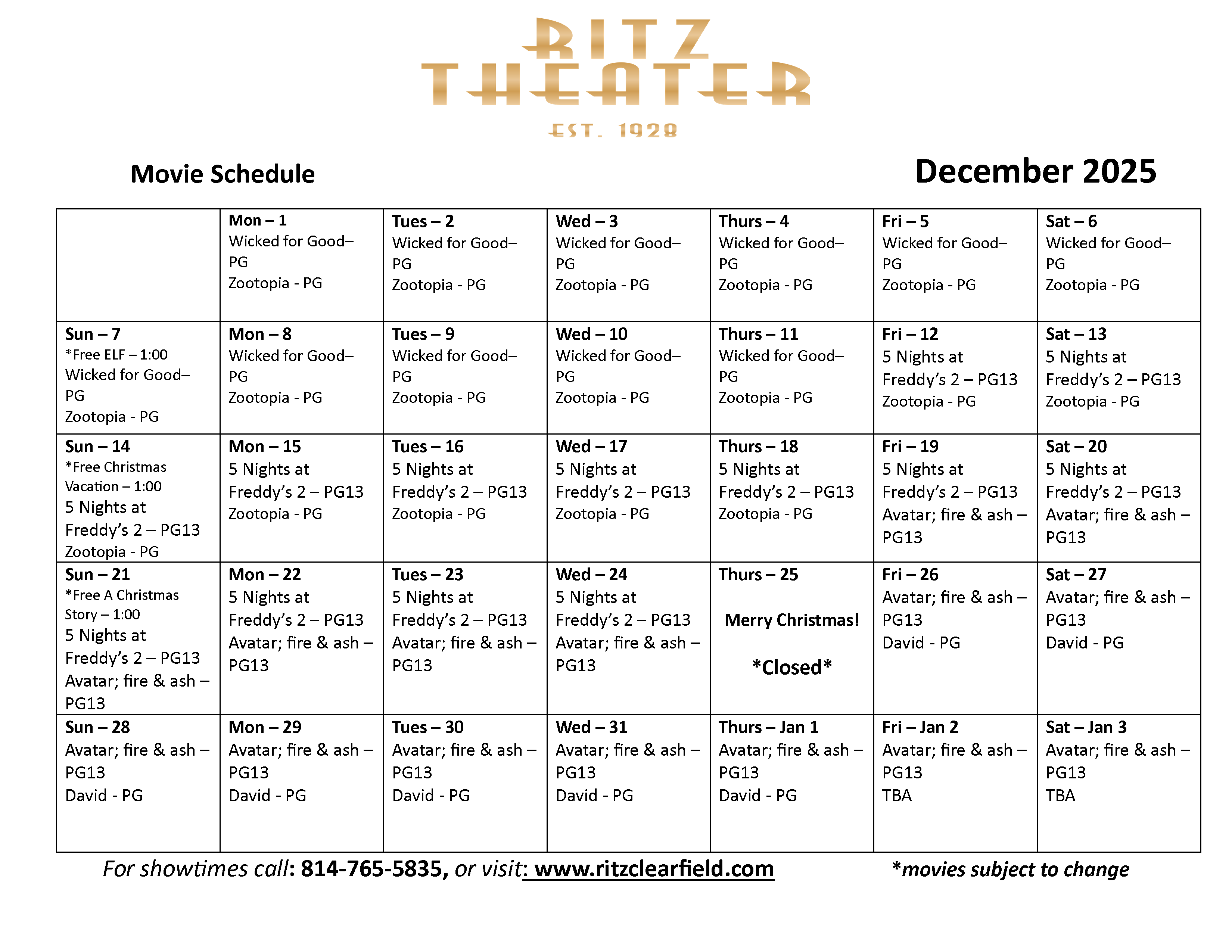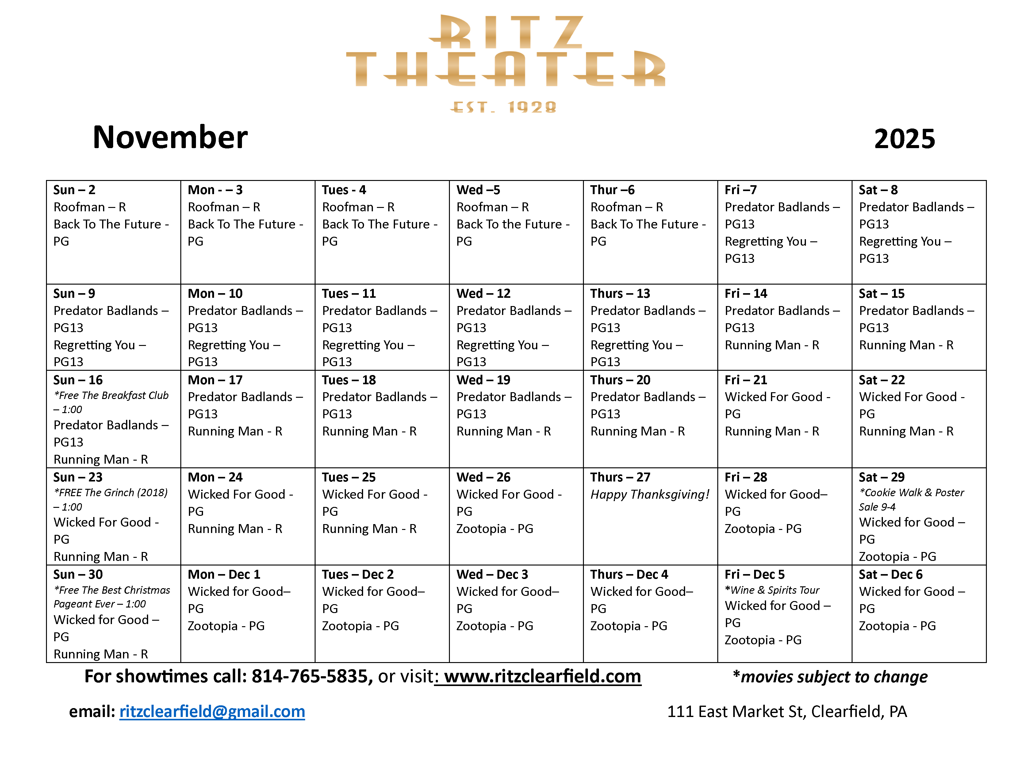 "The Ritz is a gem. It's always been a cool piece of the Clearfield community, but recently it's gotten even better with thoughtful renovations, improved concessions, increased show times, and more comfortable seating. The Ritz staff is always working hard to please!" -Josh Benton